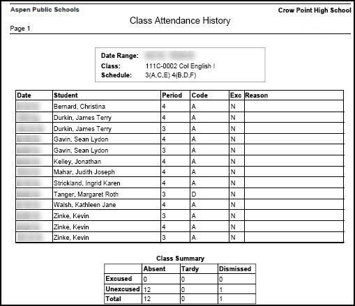 Class Attendance History Report