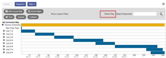 In the Staff view, you can share a curriculum map for a course. Other teachers can then view your map.